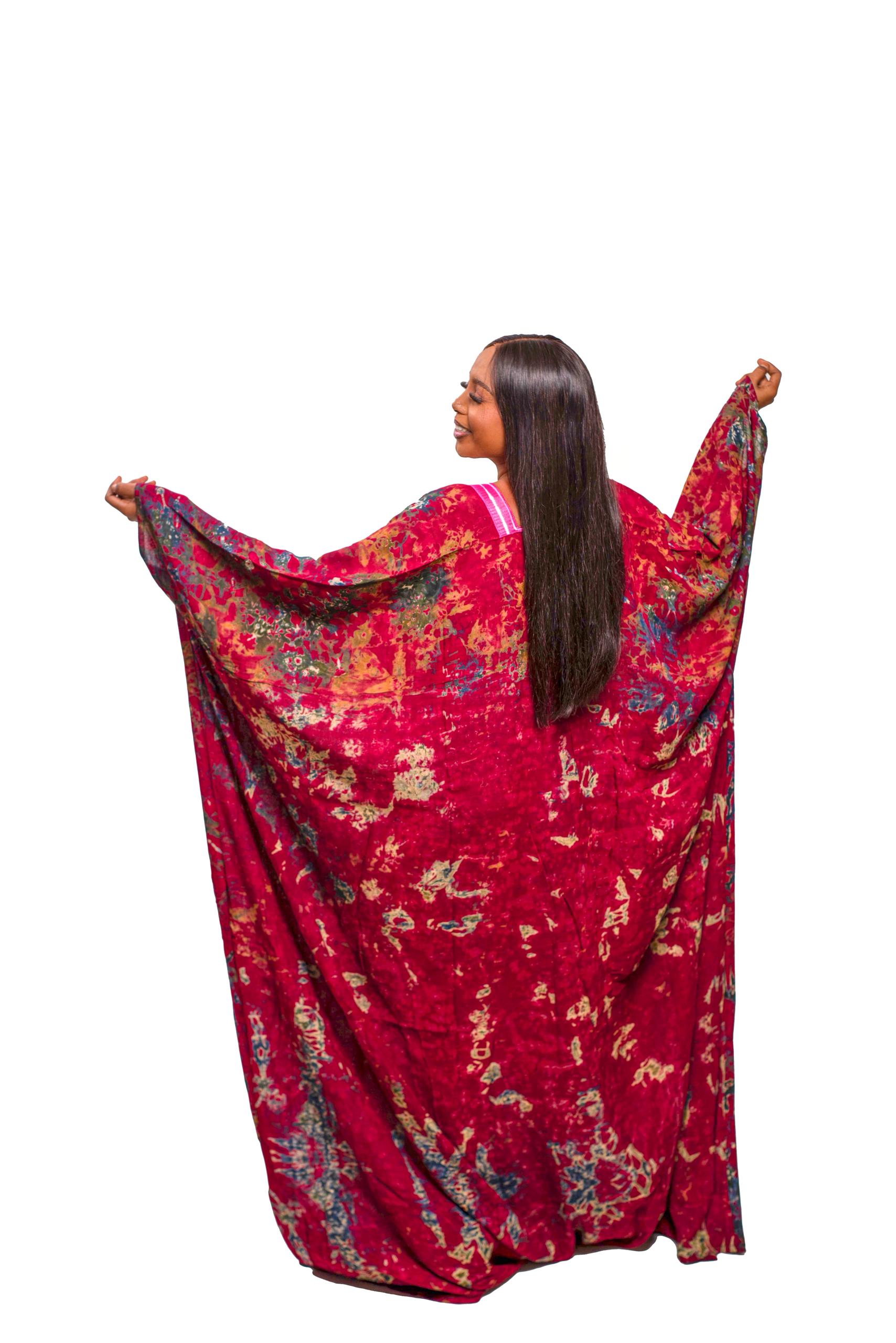 The “Ruby Mosaic” Batik Boubou Dress blends African artistry with effortless elegance. This free-size, flowing boubou features hand-dyed batik patterns in ruby red and earthy tones, accented by a bold pink embroidered panel at the geometric neckline. Wide butterfly sleeves and a lightweight, breathable fabric ensure comfort and graceful movement, making it ideal for celebrations, cultural events, or everyday Afrocentric fashion.