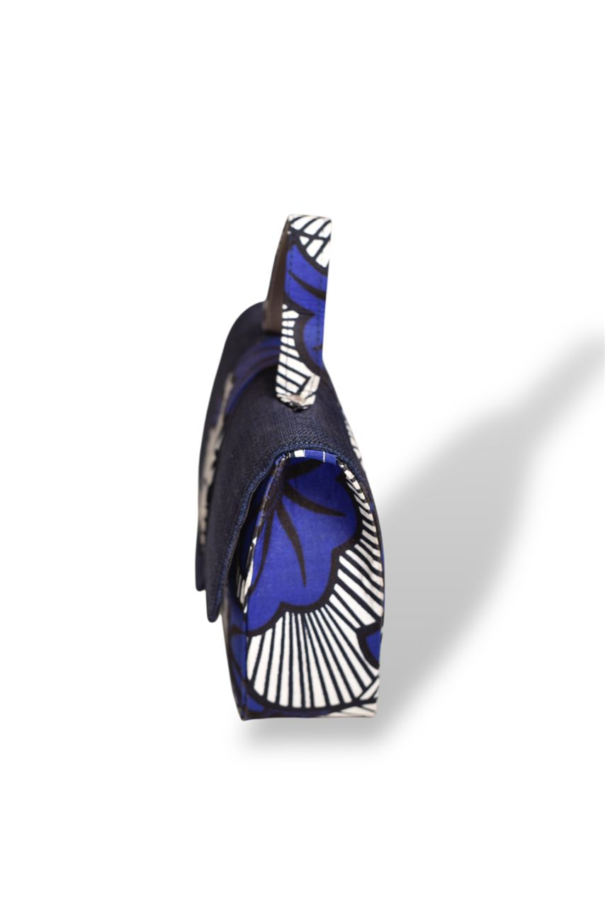 Compact Ankara mini handbag with bold stripes, unique flap design, and sturdy top handle – perfect for everyday style with a modern African touch.